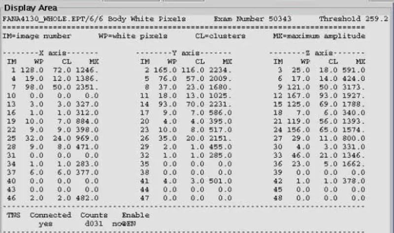 11. X၊Y နှင့် Z Gradient Drive Fiber Optics GP ဘုတ်၊ EPT အဖြူရောင် pixel ဦးခေါင်းနှင့် ကိုယ်ထည်စကင်န်ကို ဖြုတ်လိုက်ပါ။ ရလဒ်သည် pass ဖြစ်သည်။ ၎င်းသည် အဖြူရောင် pixel ကို gradient ဖြင့် လှုံ့ဆော်ပေးကြောင်း ညွှန်ပြသည်။ ဝင်ရိုးတစ်ခုတည်းတွင်သာရှိသော အဖြူရောင် pixel ကိုတွေ့မြင်ရသည်။ ထို့နောက် SGA PS၊ GP ဘုတ်ကို အစားထိုးသော်လည်း ပြဿနာရှိနေဆဲဖြစ်သည်။ X,Y,Z Gradient Drive Fiber Optics ကို ပြန်လည်ချိတ်ဆက်ပါ။